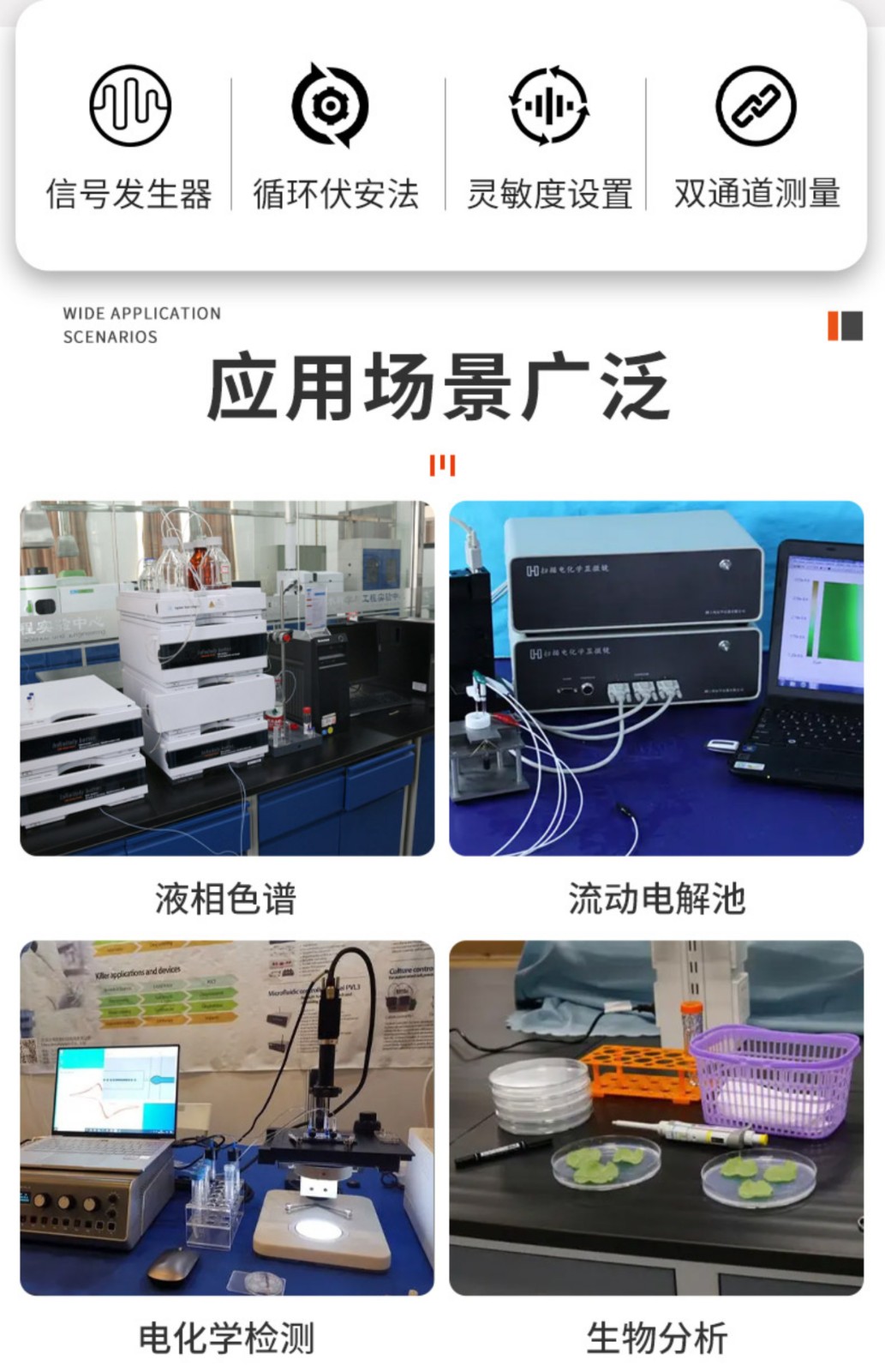chi600e系列仪器集成了几乎所有常用的电化学测量技术。为了满足不同的应用需要以及经费条件,chi600e系列分成多种型号。不同的型号具有不同的电化学测量技术和功能,但基本的硬件参数指标和软件性能是相同的。chi600e和chi610e为基本型,分别用于机理研究和分析应用。它们也是十分优良的教学仪器。chi602e和chi604e可用于腐蚀研究。chi620e和chi630e为综合电化学分析仪,而chi650e和chi660e为更先进的电化学工作站。