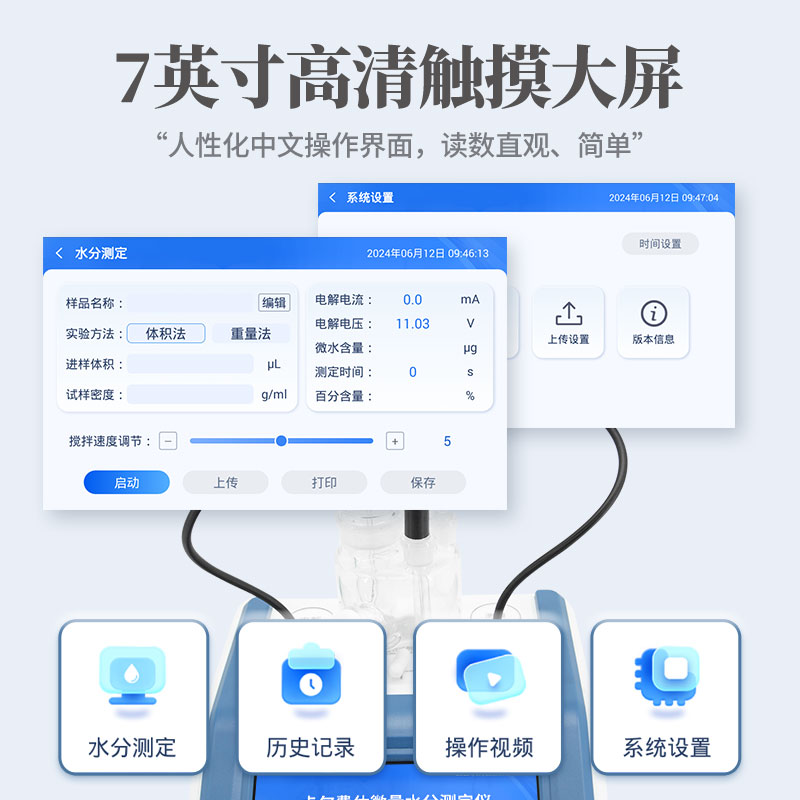 2.显示方式:7英寸液晶触摸屏显示,人性化中文操作界面,读数直观、简单。